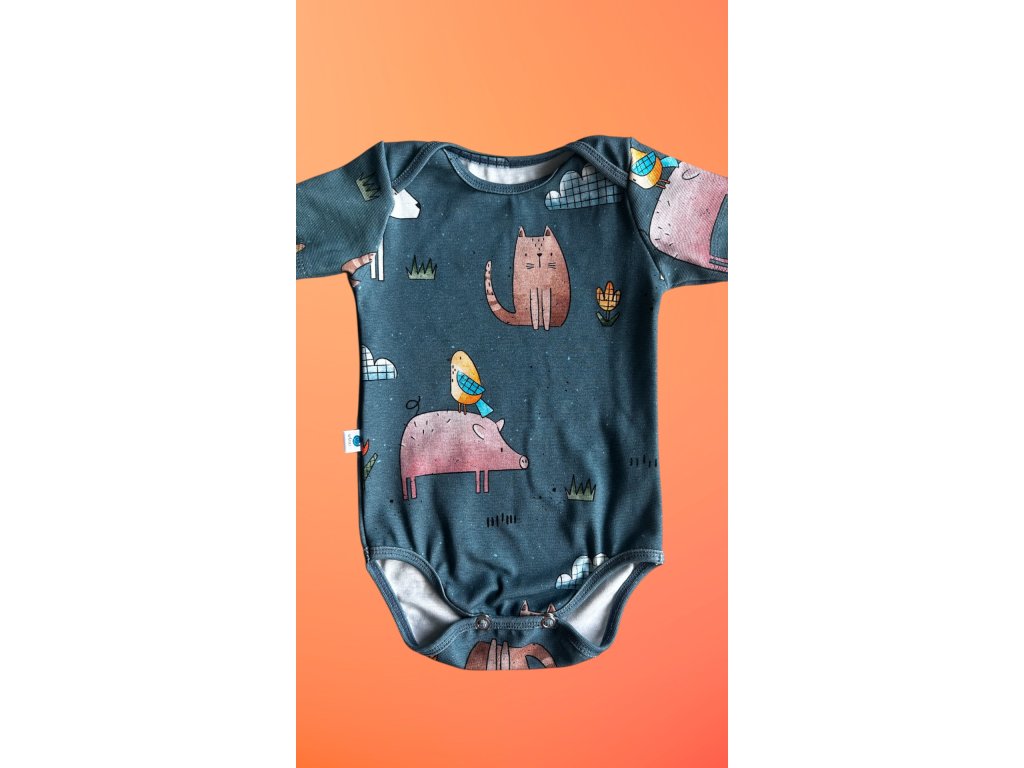 Body je ušito z měkkého jemně žebrovaného úpletu a má krátký rukáv.